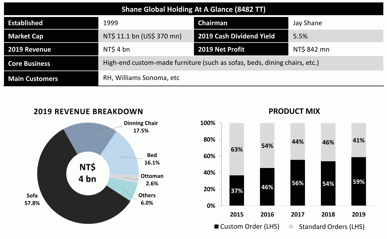 The relationship started about 10 years ago, when RH requested Shane Global to produce custom made furniture. Volumes started at one shipping container per week, and have now blossomed to more than 40 containers per week, contributing roughly 60% of Shane Global’s annual sales. Suffice it to say that Shane Global has become the number one proxy to RH. It hasn’t been all smooth sailing, but Jay has built a solid foundation in Shane Global, even in the face of 25% tariff hike, Shane Global was still able to deliver an impressive gross margin of ~40% in 2019. Jay believes that Shane Global is fully equipped to support RH’s strong ambitions, and he is ready to grow together with the giant as RH expands its US domestic and international footprint.