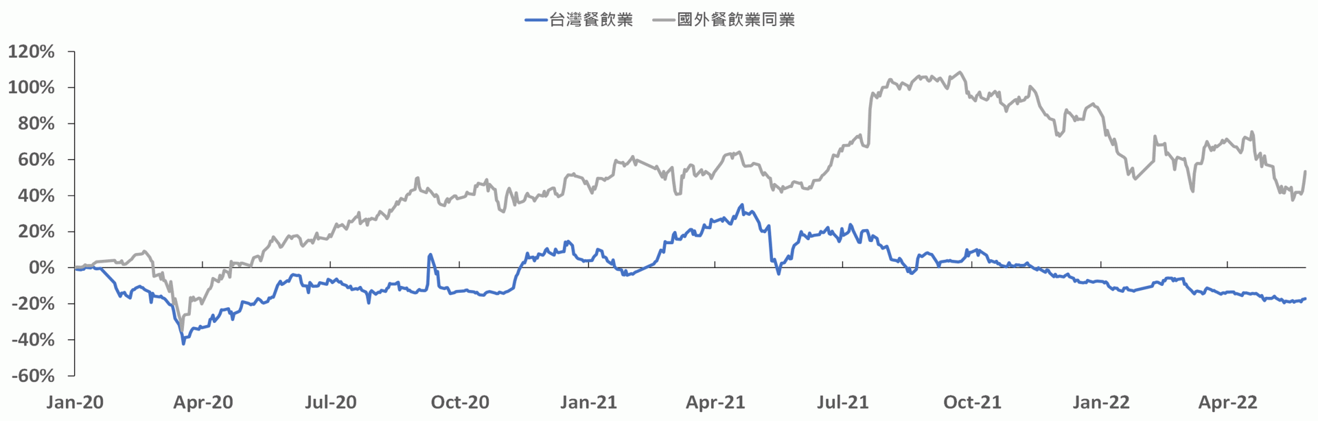 即使拉長時間軸,台灣餐飲類股股價表現仍不如國外